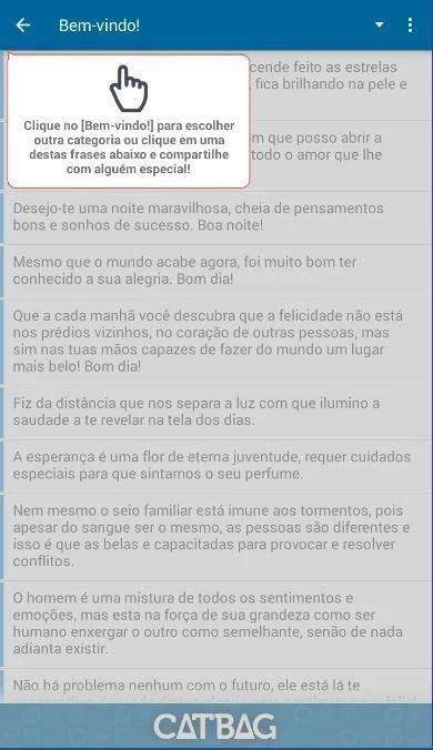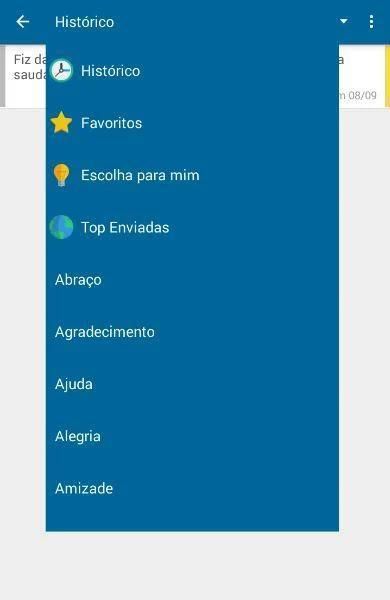 - Categoria “Escolha pra mim”, para uma escolha automática das mensagens