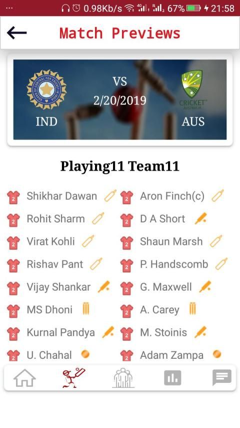 * Match Previews: This screen provides 'Possible11' for both playing teams, squad details and Full Depth Analysis of Pitch Report.