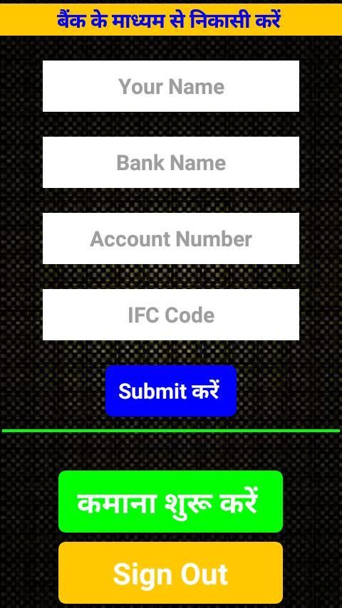 हमारे एप्लिकेशन के साथ आप असीमित वास्तविक नकद दैनिक न्यूनतम पेआउट रुपये कमा सकते हैं। Paytm / रिचार्ज / बैंक के माध्यम से 100।