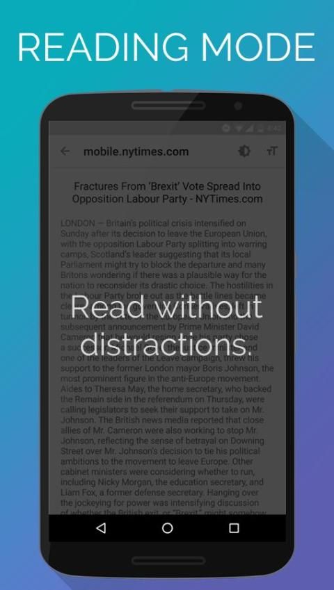 ★ Reader Mode: Polarity's reader mode enables users to read webpages with the clarity and convenience of having it on paper. It's flexibility allows the user to adjust the brightness and text size of the article.