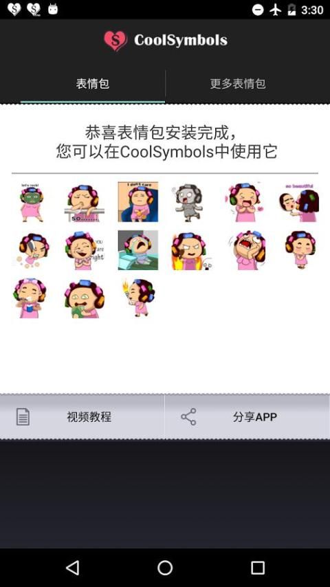 आप इमोटिकॉन पैकेज को स्थापित करना चाहते हैं, तो Coolysmbols पहले स्थापित करें।