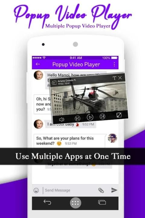 एक अनूठा वीडियो प्लेयर उपयोगी आप मल्टीटास्किंग करते हैं या एक समय के रूप में बहु वीडियो देखना चाहते हैं करना चाहते हैं। वीडियो पॉपअप आप वीडियो देखने के साथ-साथ बहु अनुप्रयोगों का उपयोग करने के लिए मदद करता है। आप अपने एप्लिकेशन की होम स्क्रीन के किसी भी आवेदन पर एक या अधिक वीडियो तैर सकते हैं। आप इस वीडियो प्लेयर का उपयोग कर बहु-कार्य कर सकते हैं। तुम भी वीडियो ज़ूम करने के लिए चुटकी द्वारा वीडियो आकार बदल सकते हैं।