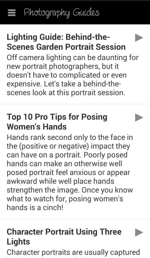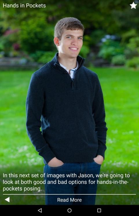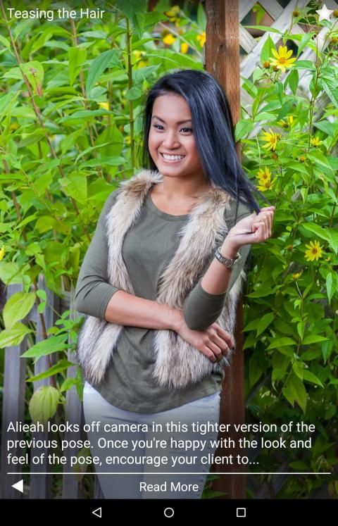 Note: Pocket Poser™ Pro is available in the Google Play Store and features over 400 poses and more detailed information on portrait photography, posing and lighting techniques.