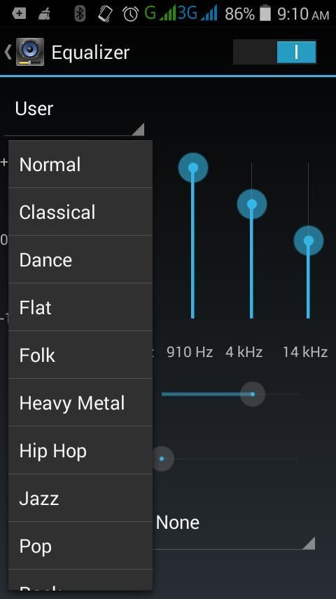 3. You can go directly the equlaizer area,followed by quick music list access page and search box and menu.