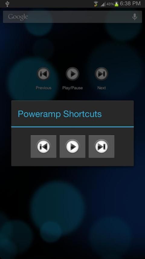 यह आपको Poweramp के संगीत नियंत्रण के लिए शॉर्टकट जोड़ने के लिए अनुमति देता है कि एक साधारण आवेदन है.
