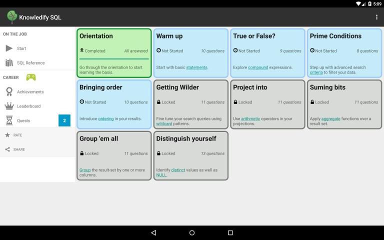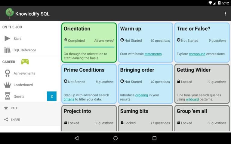एसक्यूएल अभ्यास भी परेशानी मुक्त और (हाँ!) मजेदार होना चाहिए. Knowledify के साथ, आप एक हौसले से काम पर रखा कर्मचारी की भूमिका निभानी होगी. कार्य की एक श्रृंखला आप नए नियोक्ता तैनात किया गया है कि नए डेटाबेस प्रणाली के आसपास अधिक से अधिक जटिल के माध्यम से, आप कंपनी के भीतर कदम होगा और SQL की कला में कुशल हो जाते हैं.