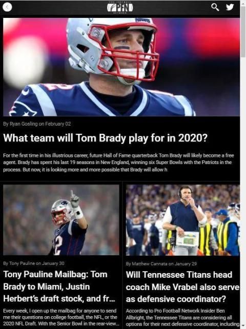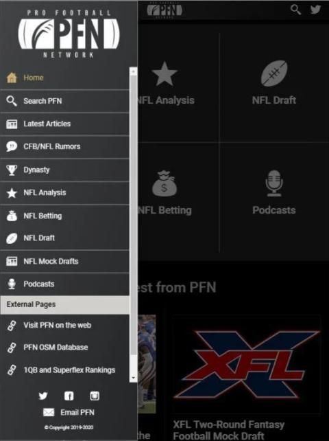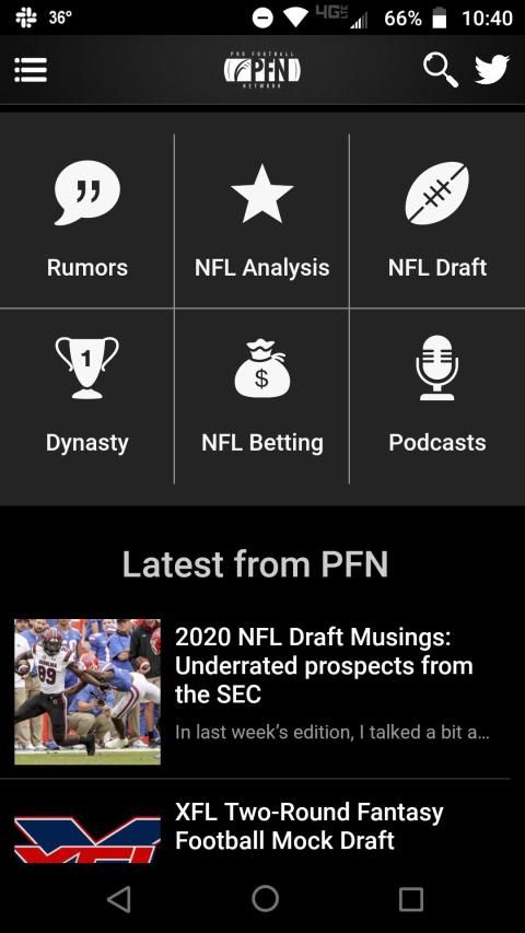 प्रो फुटबॉल नेटवर्क (पीएफएन) आपको एनएफएल, कॉलेज फुटबॉल और एक्सएफएल के आसपास से नवीनतम समाचार, अफवाहें और विश्लेषण (सट्टेबाजी और फंतासी सहित) लाता है।