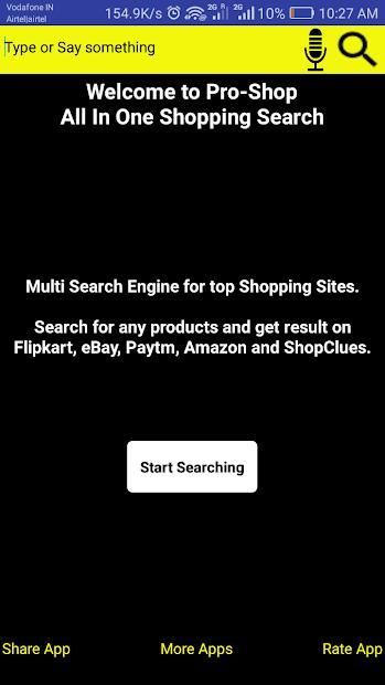 Search for any products and get result on Flipkart, Snapdeal, Paytm, Amazon and ShopClues in different Tabs.