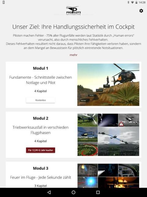 ProPilots - आपातकालीन प्रशिक्षण में विशेषज्ञों का अच्छा ज्ञान और अनुभव एक अभिनव अवधारणा में दुनिया भर में विमानन विशेषज्ञों से प्राप्त एकजुट हो गया है। सुरक्षा सिफारिशों, प्रक्रियाओं और निर्माताओं और जैसे सरकारी एजेंसियों के मानकों कनाडा, इंट की ट्रांसपोर्टेशन सेफ्टी बोर्ड। हेलीकाप्टर सुरक्षा दल, एफएए rotorcraft, एयरबस हेलीकाप्टरों, बेल हेलीकाप्टर और EASA परिष्कृत 3 डी एनीमेशन तकनीक और कल्पना की मदद से विकसित किया गया है।