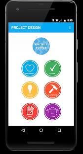 परियोजना डिजाइन एप्लिकेशन निजी परियोजनाओं, संगठनों, या कक्षा के भीतर रचनात्मकता और नवाचार की भावना को बढ़ावा मदद करने के लिए बनाया गया था। जबकि यह भी, एक डिजाइन पत्रिका के रूप में अभिनय प्रतिभागी को एक परियोजना के दौरान उनके डिजाइन की प्रक्रिया को रिकॉर्ड करने की अनुमति परियोजना डिजाइन, डिजाइन सोच विधि, एक मानव केन्द्रित समस्या को सुलझाने की प्रक्रिया पर उपयोगकर्ता को निर्देश देने में मदद करता है। परियोजना डिजाइन एप्लिकेशन के साथ, आप निम्न कर सकते हैं: