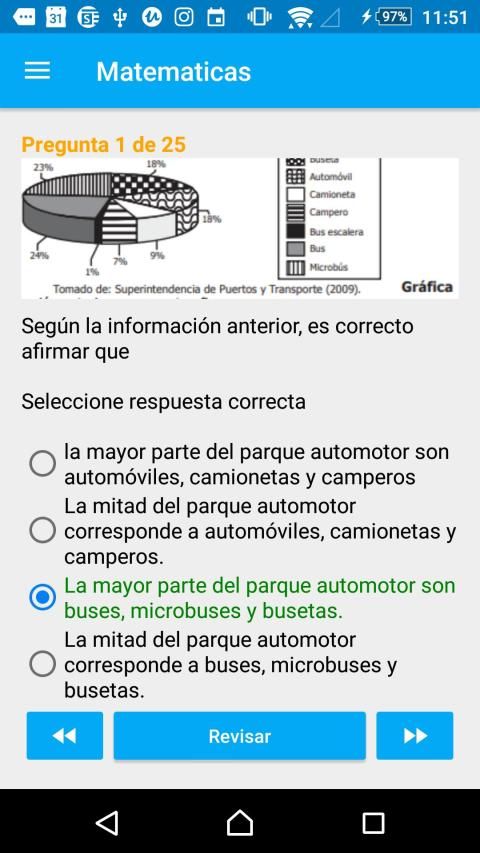 En su sección de Estudiar podrás encontrar las diferentes áreas y resolver todas las preguntas que tiene cada una de ellas, puedes verificar al instante si tu pregunta es correcta o no y navegar entre ellas para revisarlas de nuevo si es necesario.