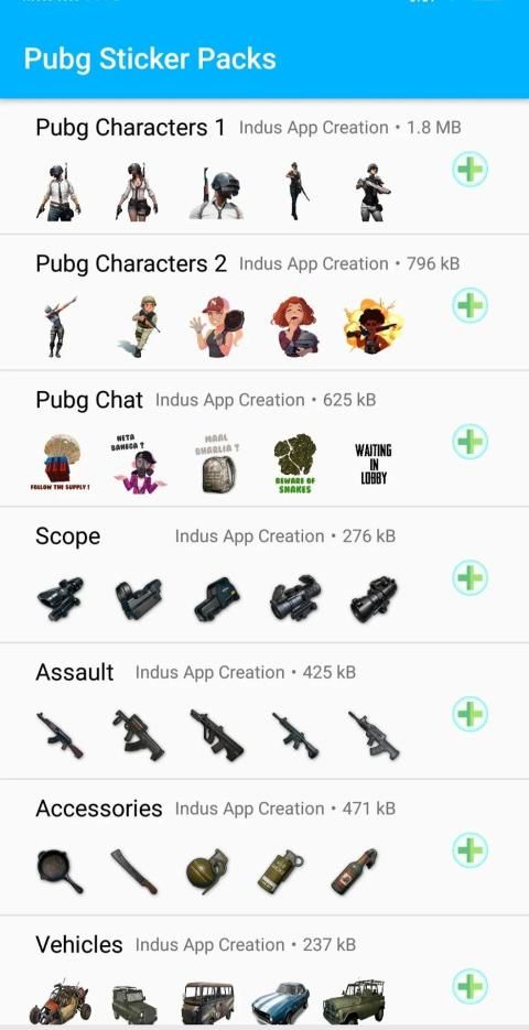 Accessories, WAStickersApp, PUBG Weapons and and Cartoons