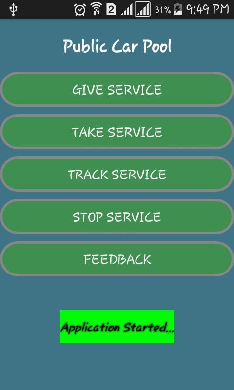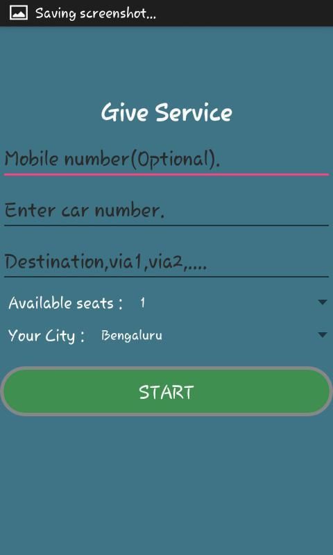 सेवा दे: व्यक्ति कार का उपयोग कर व्यक्ति के लिए कार पूल सेवा दे सकता है एक ही मार्ग में जाना चाहते हैं। सेवा प्रदाता अपने गंतव्य और के माध्यम से (वैकल्पिक) दे देंगे।