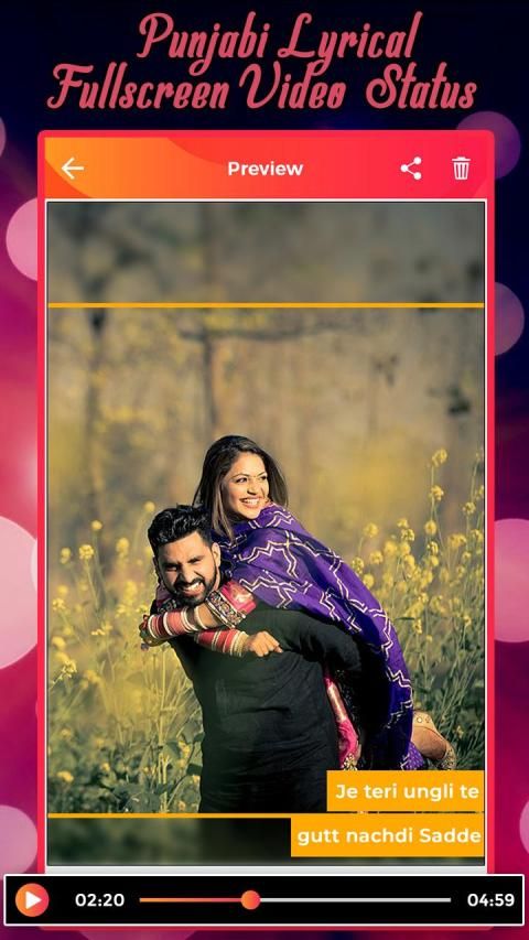 9Apps services for free Android apps. 20,000+ users downloaded My Photo Punjabi Lyrical Video Status Maker latest version on 9Apps for free every week! The application is severely widely use. This hot app was released on 2019-07-20. Read the following paragraph to see more information.