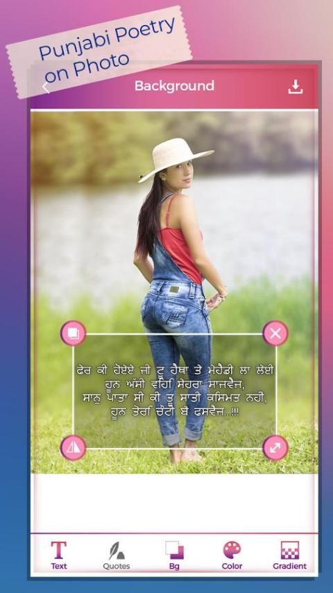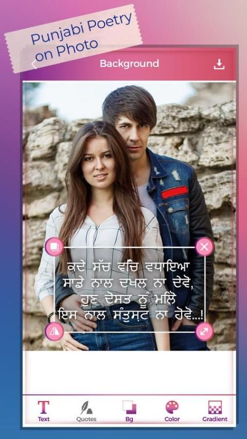 फ़ोटो एप्लिकेशन पर पंजाबी काव्य आप अपनी गैलरी तस्वीरों पर या दिए गए समृद्ध संग्रह पर रोमांटिक पंजाबी पाठ और पंजाबी कविता जोड़ने की अनुमति