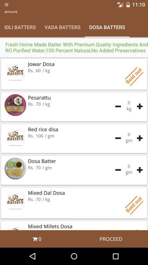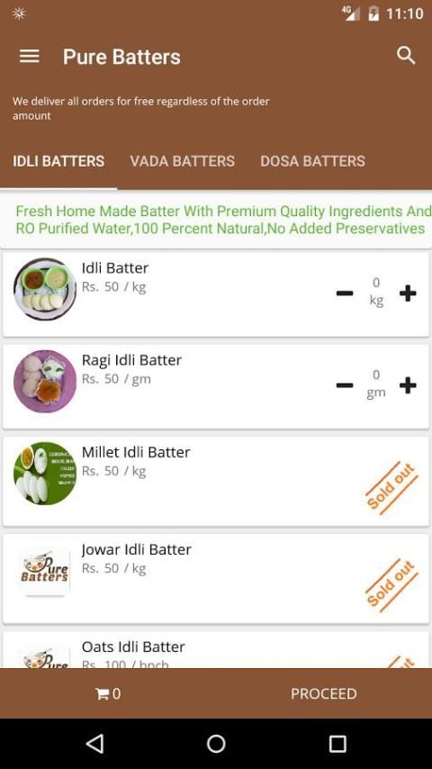 हम हाल में तैयार बल्लेबाजों इडली / डोसा / वड़ा Batters.We प्रारंभ के विभिन्न प्रकार बनाया गया प्रदान करने के बाद हम आदेशों को प्राप्त करें।