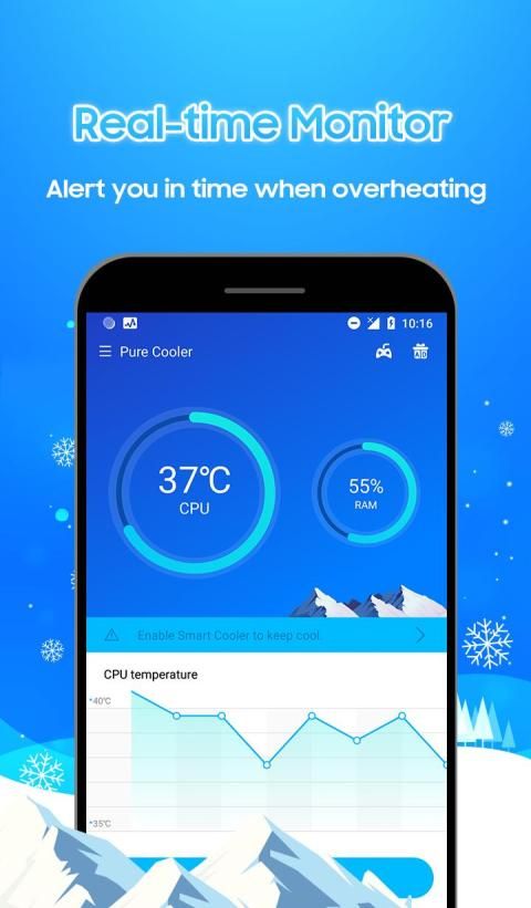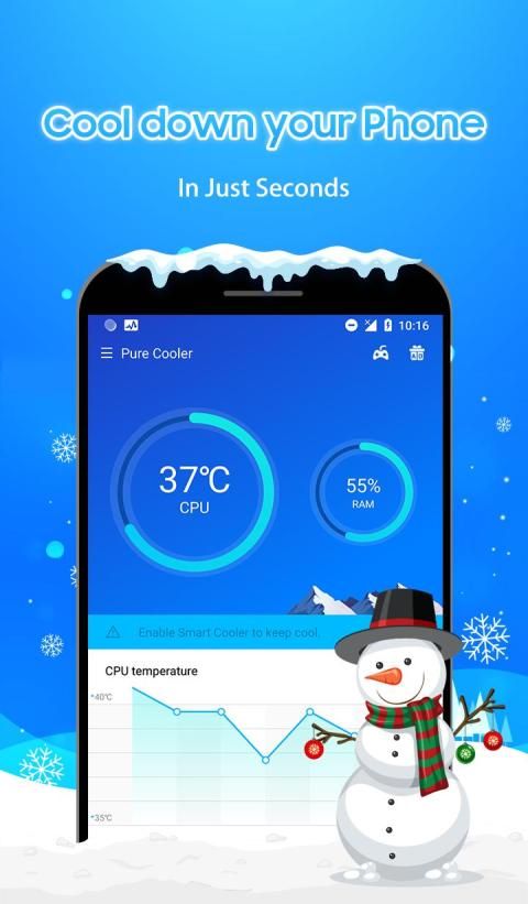 Pure Cooler - Display CPU and RAM usage in real time and clean it up. Improve the running speed of mobile phones and alleviate the fever of mobile phones.