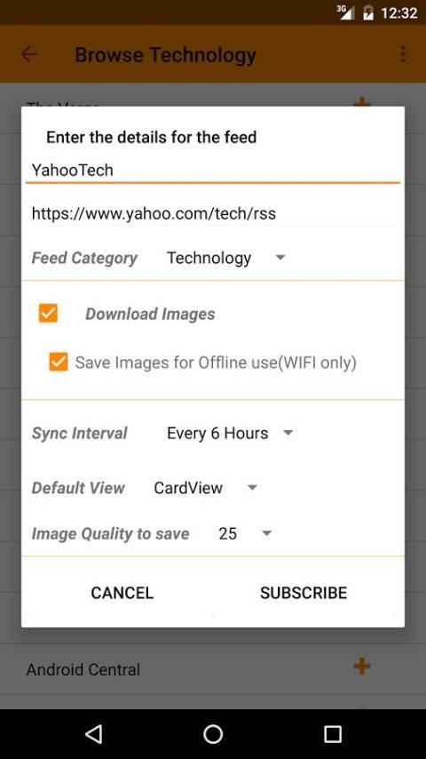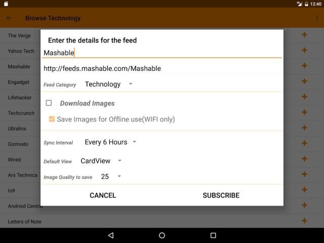 - समय-समय पर / अनुसूचित सिंक अंतराल: निर्दिष्ट कितनी बार एप्लिकेशन को सभी सदस्यता ली फ़ीड ताज़ा करना चाहिए।