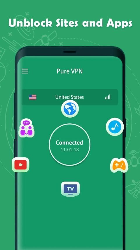 Pure VPN Proxy is a lightning-fast app provide totally unlimited free VPN proxy service. Not need any configuration, just simply click one button, you can access the Internet securely and anonymously.
