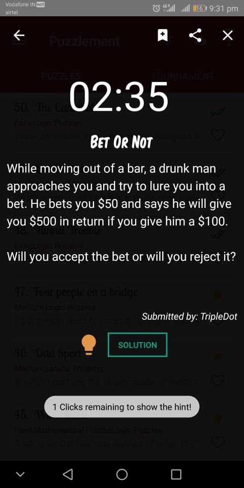 Get logic puzzles daily and compete with the world for this logic puzzle game! Download and start solving these quality brain teasers, riddles!