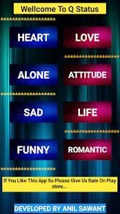 so guys this application will help you to update daily your whats app status and also facebook status so lets enjoy your Q Status-A New Status App...