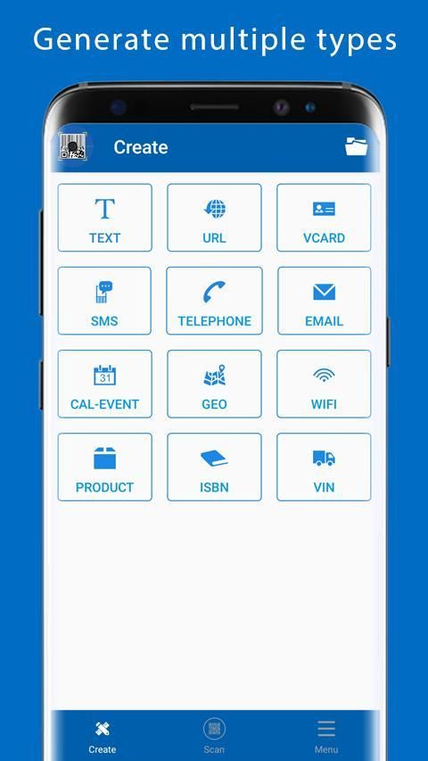 QR Barcode Pro can generate many qr & barcode types include Text, URL, Product, ISBN, Event calendar, Contact, Email, GEO and many others.
