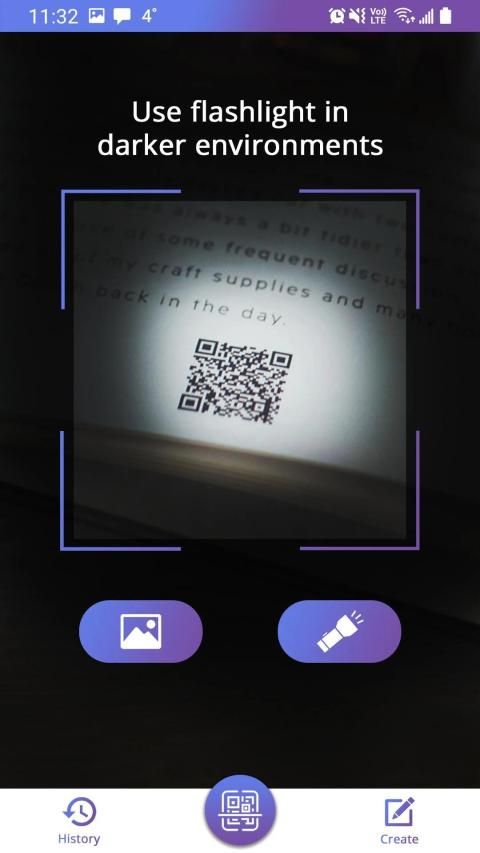 अंधेरे वातावरण में आप QR कोड / बारकोड को स्कैन करने के लिए टॉर्च खोल सकते हैं