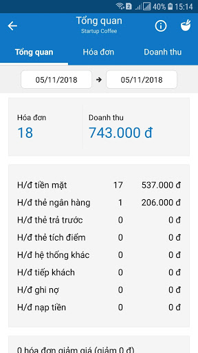 Xem doanh số hiện tại (số hóa đơn, số tiền, các kiểu thanh toán...)