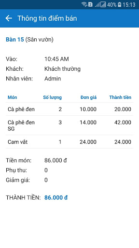 Nếu quán có đăng ký chức năng báo cáo online thì sẽ xem được các báo cáo chi tiết kinh doanh kể cả lịch sử...