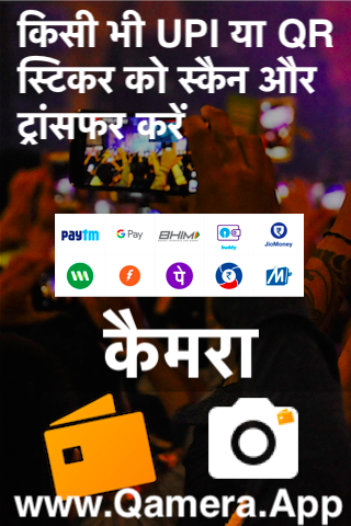 कैमरा - UPI QR स्कैन और ट्रांसफर - क्यूआर कोड स्कैनर, रीडर और UPI ट्रांसफर