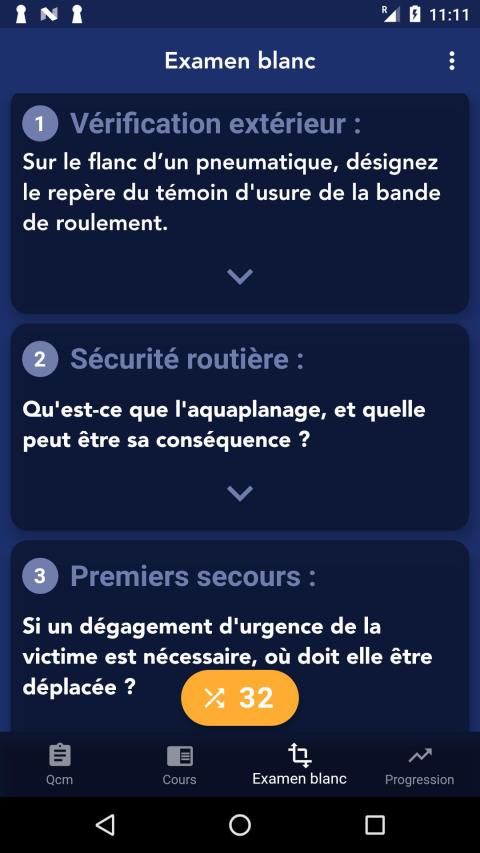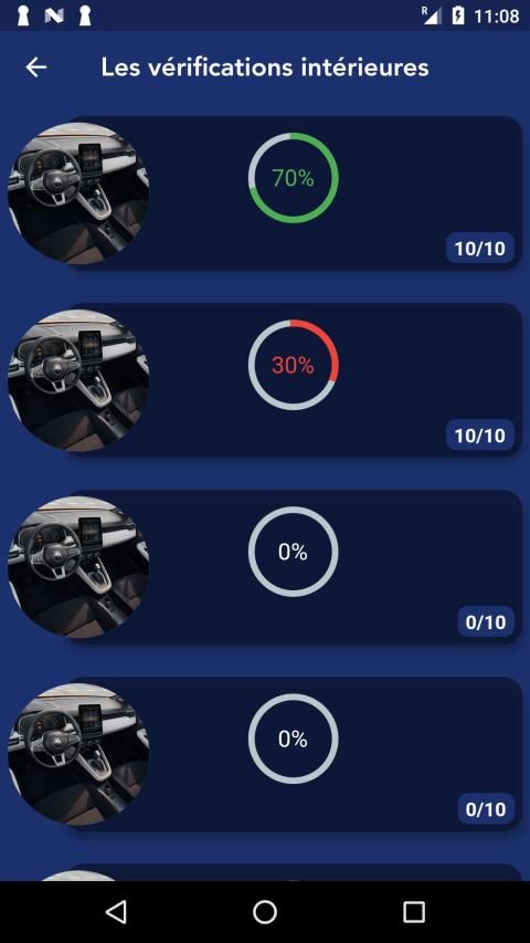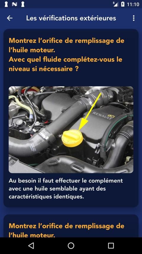 Grâce à l'application Examen Pratique Permis de Conduire, il est très simple de réviser les vérifications intérieurs et extérieurs ainsi que les gestes de premiers secours.