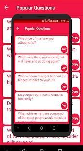 Build confidence and Get started with your crush with these ready questions carefully drafted into categories. We will guide you from the first date on various questions to ask to know her better, we also list some questions that are forbidden to ask. We pimp your conversation with funny and random questions. AS you progress, we have tones of love and romantic questions at your disposal. About future questions will help you understand her perceptions and her visions in life. What she values most. Try this app for free