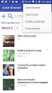 Quick Browser is a fast, simple and quick browser for Android. It's intended to be easy, simple and as light as possible with the minimum features. Simply navigate your favorite sites in the Dropdown list or remove any favorites from the list by long tapping.