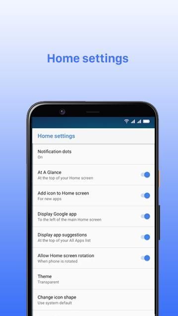 -थीम: जब आप डिफॉल्ट एंड्रॉइड थीम से थक जाते हैं, तो आप सेटिंग मेनू में कई कस्टम लॉन्चर थीम चुन सकते हैं। इन सभी की अपनी अनूठी शैली और अनुभूति है।