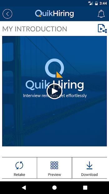 The QuikHiring app, help in job Searching and Recruiting process.For job seekers, it allow Job searching easier with showing a lot of from you that a resume cannot. For recruiters, it allow finding the right candidate with quality for Job in less time. Video intro and video interview on invitation is the core feature of this app. Unique and best ever solution to find job and for recruitment. The choice of employers, Employment is never so easy. Power yourself with your Android mobile, soon in IOS and windows.