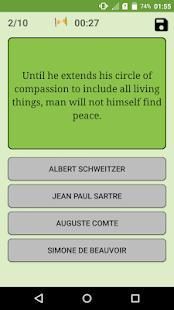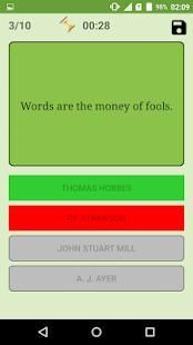 This quiz app brings you thousands of quotes from some of the greatest philosophers (both Western and Asian) over the centuries. From Aristotle to Confucius, from Immanuel Kant to Bertrand Russell, we have got them all. You can play our quiz of quotes where you have to guess the correct author. So, if you think you know all about philosophy and philosophers then this app is for you.