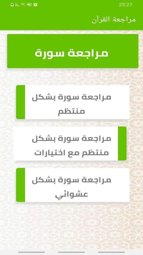 يضم التطبيق في هذا الصنف ثلاثة أشكال من مراجعة السور: