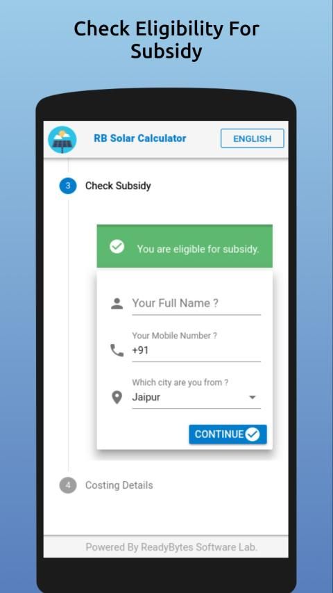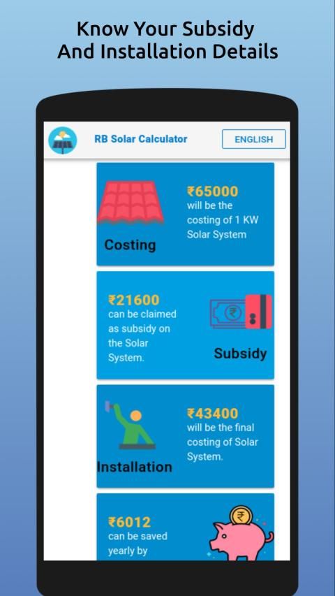It also gives you a breakdown on the amount of the required solar system like the costing of Solar Panel, eligibility of subsidy, Installation cost, yearly savings, your payback years and your Return On Investment on the requirement of the Solar System.
