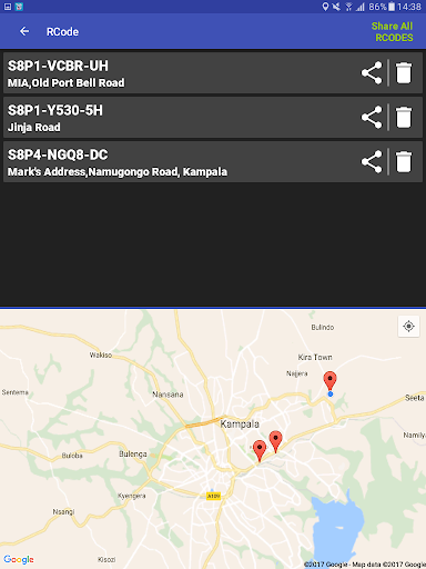 The RCode reads data derived from GPS coordinates and converts it into a special code the (RCode) that is unique to every location, this then becomes the electronic address used to identify that physical address. This can then be shared with Service providers, Family and Friends.