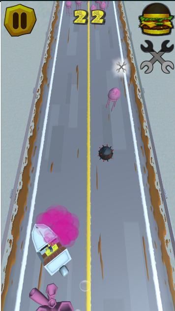 Race Bikini Bottom is a fun arcade about the adventures of our beloved hero. He never learned to drive, but this does not stop his attempts to drive. Help him get to his destination, while collecting jellyfish and avoiding obstacles.
