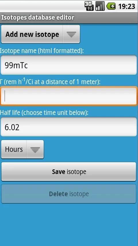 The app calculates dose rates etc. assuming a point source in vacuum and linear attenuation in shielding materials. Isotopes and shielding materials can be added, deleted or modified.