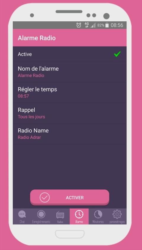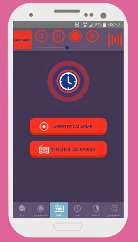 - आवेदन आप अपने पसंदीदा रेडियो स्टेशन के साथ अलार्म शुरू करने के लिए अनुमति देता है