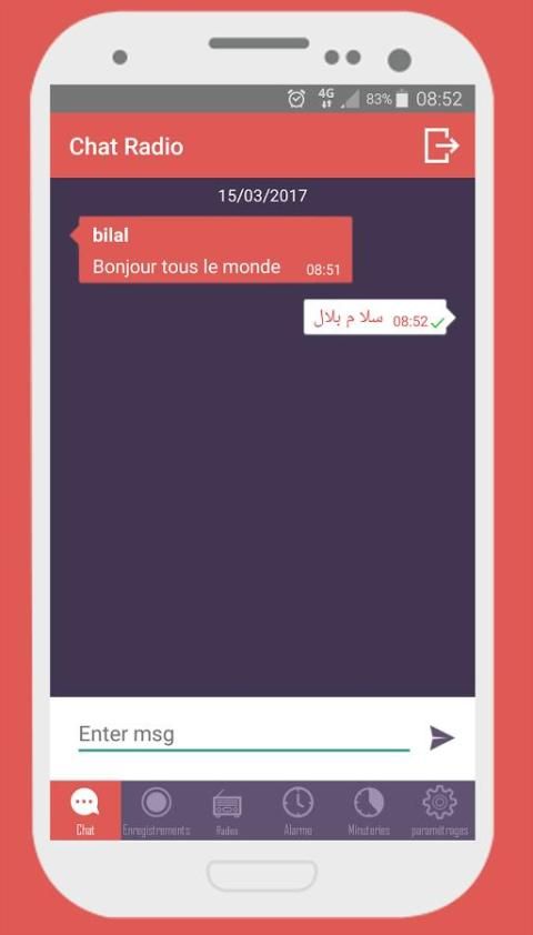 - आवेदन आप जो रेडियो सुनने उपयोगकर्ताओं के साथ संदेशों का आदान लिए अनुमति देता है