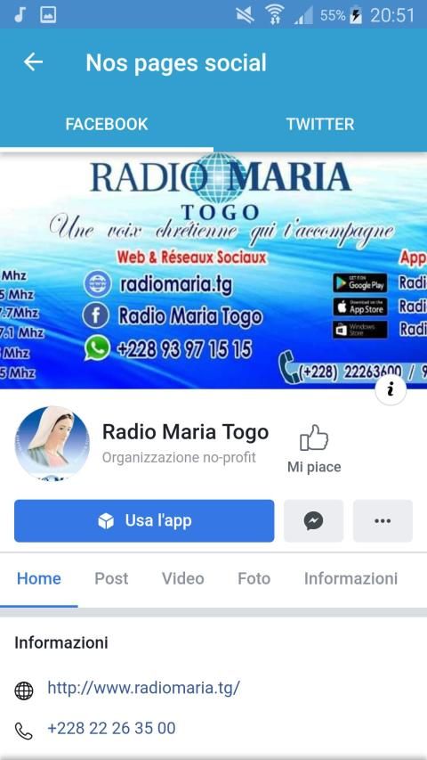 रेडियो मारिया टोगो को 19 मार्च, 1997 को बिशप फिलिप फ़ानको केपीओडज़ोरो ने बनाया था, तब आर्कबिशप ऑफ़ लोम। आरएमटी में दापॉन्ग, कारा, कल्पीमे, अताकपामे और सोतौआ में एक रिले स्टेशन, सोकोदे के सूबा के 4 स्टेशन हैं। आरएमटी में 200 से अधिक स्वयंसेवक हैं