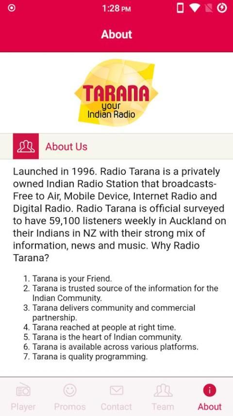 रेडियो तराना 1386 AM न्यूजीलैंड है 'भारतीय समुदायों के लिए केवल पूरी तरह से विकसित एशिया प्रशांत वाणिज्यिक रेडियो स्टेशन खानपान है। रेडियो तराना मुख्य रूप से न्यूजीलैंड 'के भारतीय समुदाय के उद्देश्य से 1386AM पर हिंदी भाषा सेवा प्रदान करता है। यह अधिक से अधिक ऑकलैंड क्षेत्र में चारों ओर 80,000+ की श्रोतागण है। हमारे श्रोतागण भी जहाँ तक हैमिल्टन, वेलिंगटन, क्राइस्टचर्च और अन्य शहरों और न्यूजीलैंड के शहरों के रूप में हो रहा है।