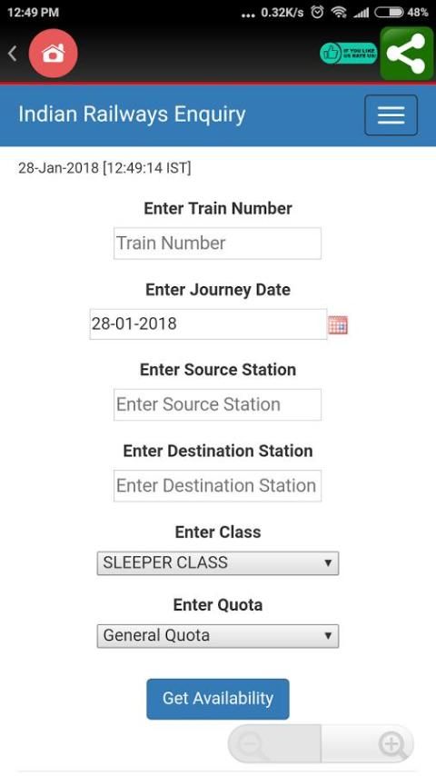 - ट्रेन चल स्थिति, रेलवे पूछताछ, सीट उपलब्धता पता करने के लिए, सभी में अपनी भाषा में प्राप्त करें।