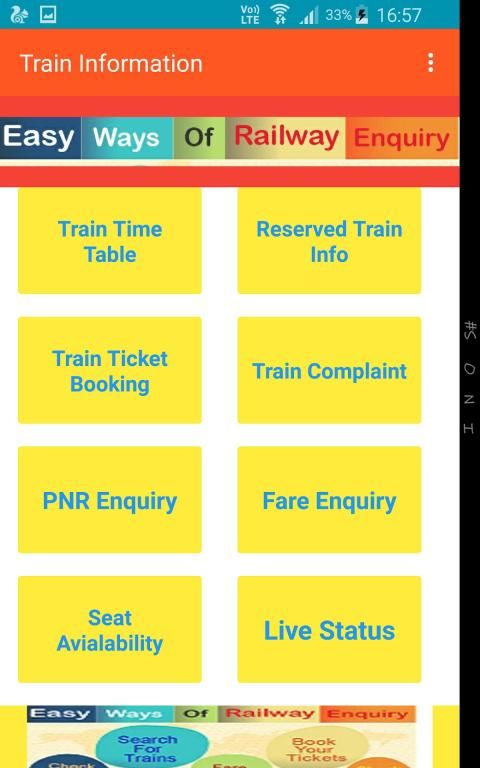Indian Railway app (All in one) has 1) All train name and number 2) Find Trains 3) Seat Availability 4) Train Schedule 5) Train Live Status 6) pnr status and tracker 7) Menu Rates 8) Fair Enquiry.