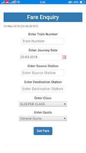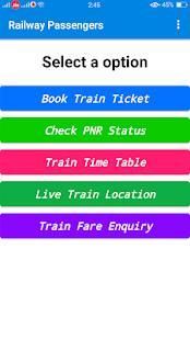 यह आवेदन अपने ट्रेन लाइव स्थान, ट्रेन टाइम टेबल, ट्रेन किराया सूचना, पीएनआर स्थिति को खोजने के लिए मदद करता है और यह भी यह पुस्तक ट्रेन टिकट के लिए मदद करता है।