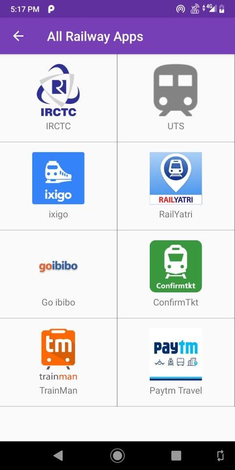 Irctc ,UTS ,Ixigo , railyatri , goibibo ,confirmtkt ,trainman ,Paytm travel.