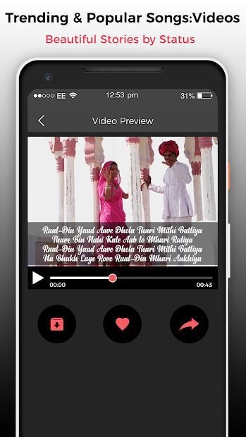 Video status have the option to directly share videos status on social sides with application given collection of amazing Rajasthani, sad, romantic videos